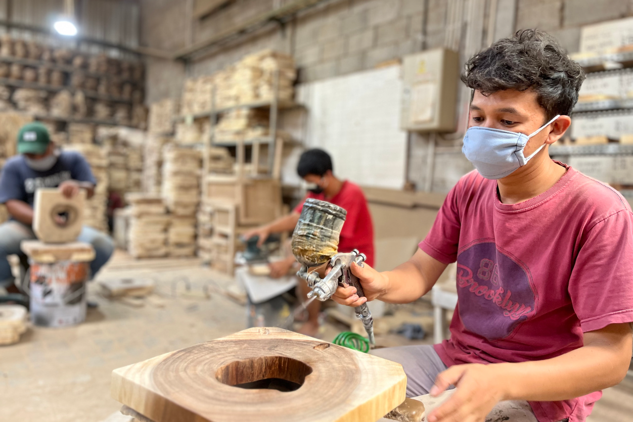 As a handicraft and furniture manufacturer and exporter, we empower traditional market communities and use as much as possible eco friendly and sustainable natural materials. With 150 employees we shipped 135 containers last year and we aim to grow steadily each year.